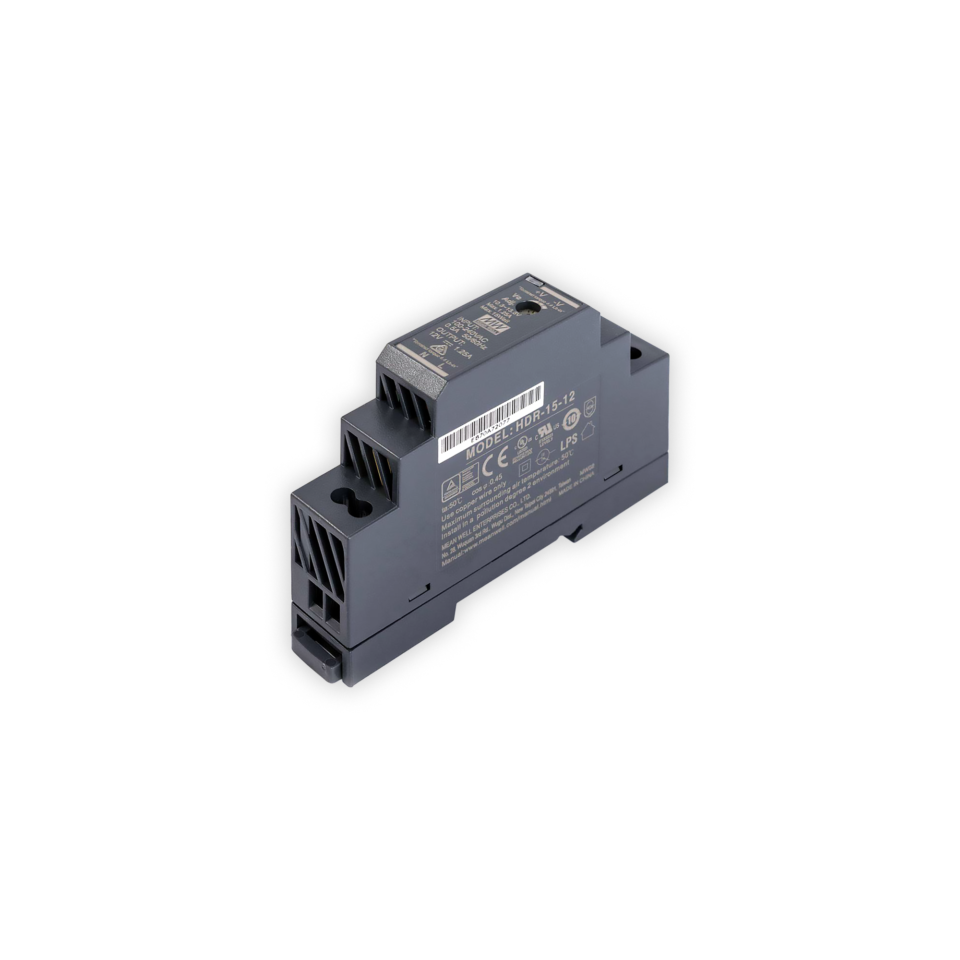 Alimentatore per utilizzo comune a tutti i sistemi. Alimentazione 12Vdc/1,24A. Installazione a parete oppure su guida DIN (1 modulo).