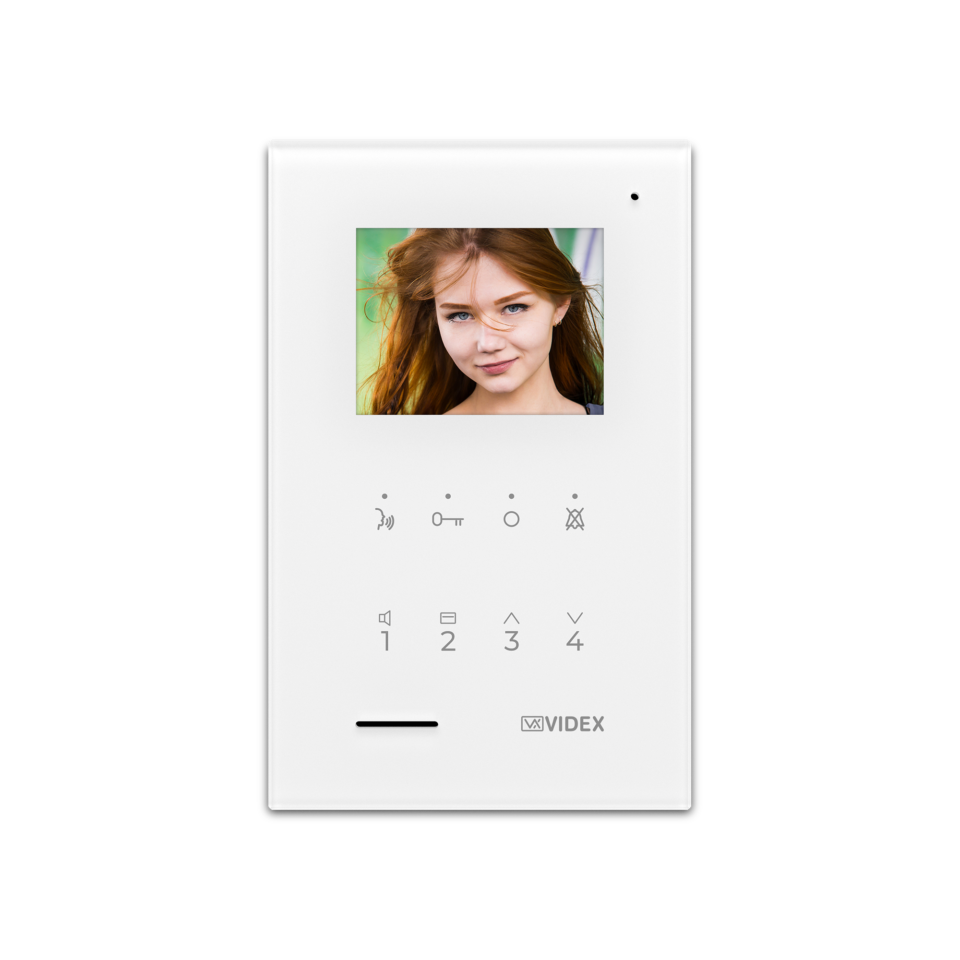 Videocitofono serie KRISTALLO per sistema VX2300 viva voce full-duplex, monitor TFT LCD da 3,5”, 8 pulsanti soft touch per funzioni : conversazione, rifiuto chiamata, autoaccensione, apri-porta, chiamata intercomunicante (4), commutazione telecamera, servizio privacy, attivazione relè remoto cod. 2305. Ingresso chiamata di piano. Regolazione contrasto, luminosità, volume di chiamata e privacy. Funzione intercomunicante di serie per un massimo di 4 dispositivi nella stessa montante o derivazione. Configurazione del dispositivo attraverso dip-switch. Materiale in policarbonato bianco effetto lucido. Alimentazione da BUS oppure 12Vdc opzionale con cod. 323/12. Dimensioni montaggio da superficie: 120x190x29mm. Installazione da incasso attraverso scatole cod. KRV981 o KRV983. Dimensioni montaggio da incasso: 120x190x8mm.