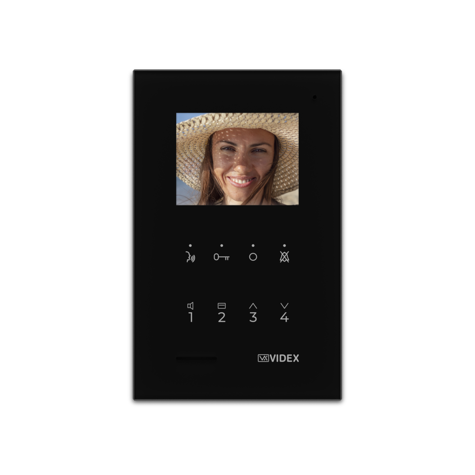Videocitofono serie KRISTALLO per sistema VX2300 viva voce full-duplex, monitor TFT LCD da 3,5”, 8 pulsanti soft touch per funzioni : conversazione, rifiuto chiamata, autoaccensione, apri-porta, chiamata intercomunicante (4), commutazione telecamera, servizio privacy, attivazione relè remoto cod. 2305. Ingresso chiamata di piano. Regolazione contrasto, luminosità, volume di chiamata e privacy. Funzione intercomunicante di serie per un massimo di 4 dispositivi nella stessa montante o derivazione. Configurazione del dispositivo attraverso dip-switch. Materiale in policarbonato nero effetto lucido. Alimentazione da BUS oppure 12Vdc opzionale con cod. 323/12. Dimensioni montaggio da superficie: 120x190x29mm. Installazione da incasso attraverso scatole cod. KRV981 o KRV983. Dimensioni montaggio da incasso: 120x190x8mm.
